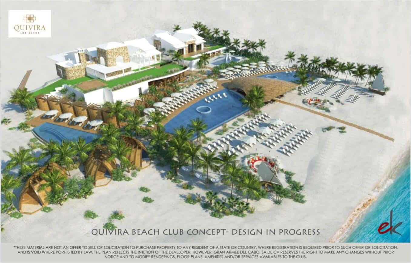 Si la propiedad no es suficiente para seducirle, la impresionante combinación de playa y club de golf lo será. Los propietarios pueden relajarse en un hermoso y tranquilo entorno frente al mar en la Casa Club. Los propietarios de Quivira tienen acceso completo a los restaurantes e instalaciones de Cabos Pueblo Bonito Resorts en la Playa Principal de Cabo. Todas las villas de Quivira gozan de impresionantes vistas del exterior, incluidas las hipnotizantes puestas de sol del Pacífico.